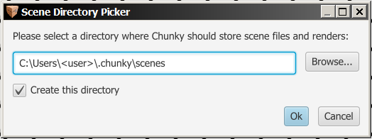 Browse: Opens a file explorer dialog box to browse for a directory to which Chunky should save scenes. Alternatively, type the folder path in the input field to the left.